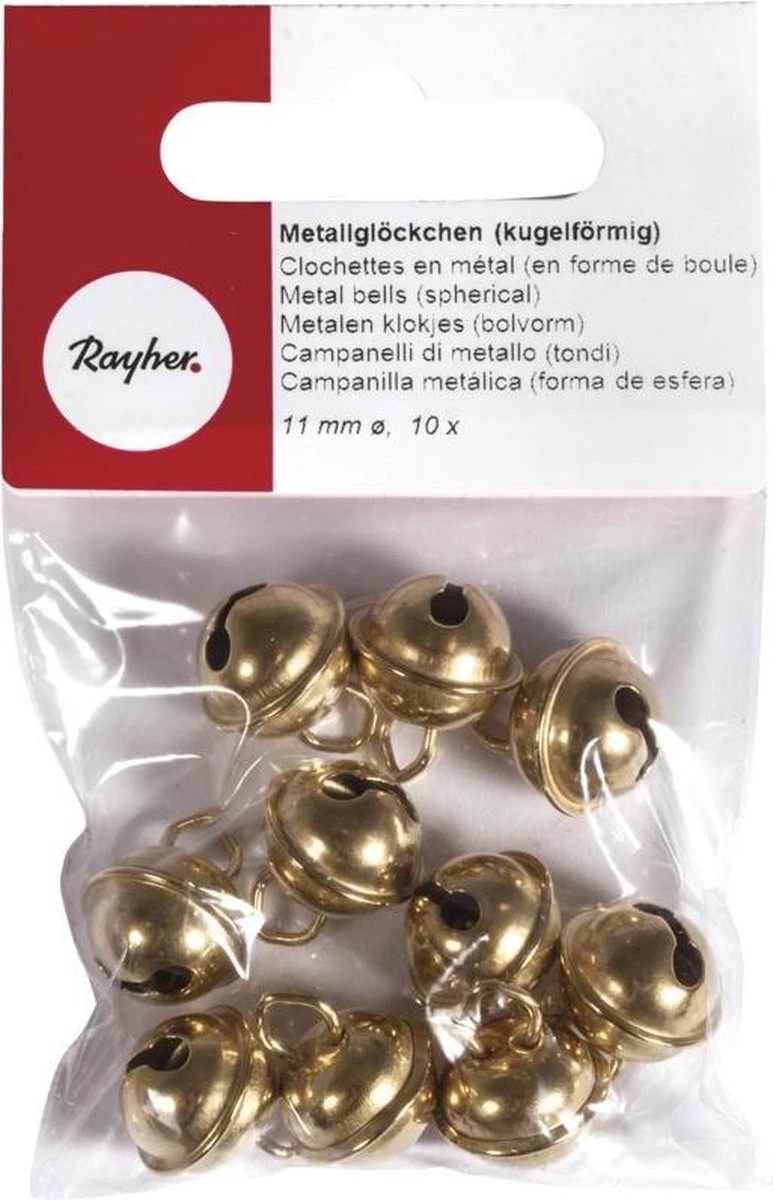 10x cloches en métal doré avec oeil 11 mm. 10x cloches décoratives en métal de couleur or. Les bulles ont une taille d’environ 11 mm de diamètre. Matériau : métal. Nombre de pièces: 10x. Cloches de Noël pour un bonnet de Noel. Loisirs / artisanat fournit des fournitures pour le bricolage.