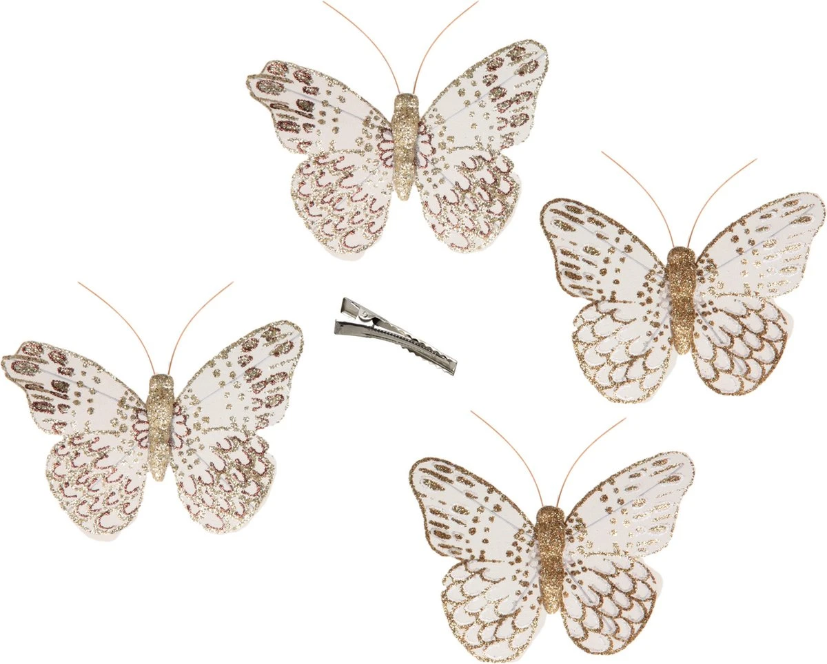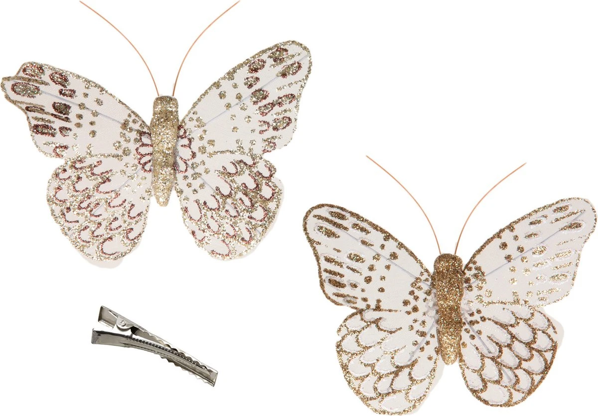 12x pièces de décoration papillons sur clip paillettes dorées 10 x 8 cm. Les papillons avec clip peuvent être utilisés, par exemple, pour la décoration des plantes, comme figurines de décorations de Noël pour votre sapin de Noël, mais aussi comme matériel de loisirs / bricolage.
