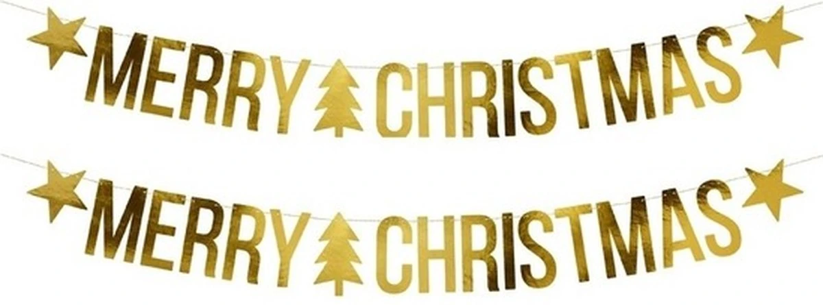 2x Bannières DIY Golden Merry Christmas banderoles / guirlandes 13 x 150 cm. Ensemble complet pour fabriquer votre propre guirlande de bannières, l’ensemble contient: 2 mètres de corde d’or, des figurines de Noël et les lettres qui forment ensemble les mots Joyeux Noël. Vous n’avez qu’à enfiler les drapeaux de bannière sur la corde et la ligne de drapeau est prête! Vous recevrez 2 sets. Matériel: corde, carton. Dimensions une fois assemblé: 13 x 150 cm avec environ 25 cm de corde à nouer des deux côtés. Décorations de Noël décoration de banderoles.