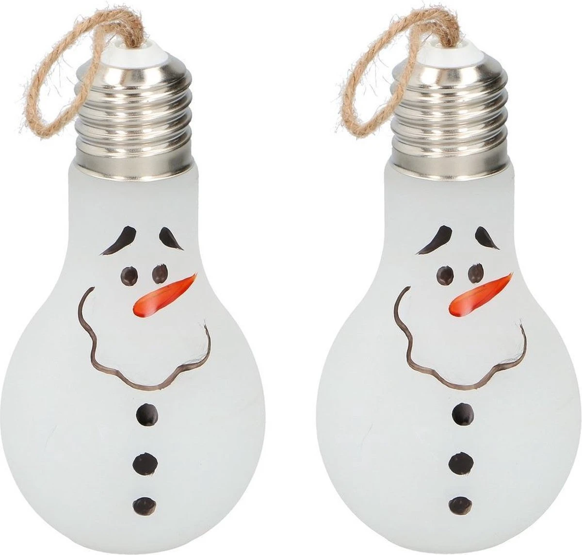 2x décoration de Noël lumières bonhomme de neige avec éclairage LED 18 cm. Éclairage LED bonhomme de neige / bonhomme de neige sous la forme d’une boule de lumière avec un cordon en haut pour accrocher la boule. Equipé de 6 lumières LED à l’intérieur. Fonctionnant avec 3 piles bouton (LR41) incluses. Taille: environ 9,5 x 9,5 x 18 cm. Matériel: verre / plastique. Nombre de pièces: 2x.