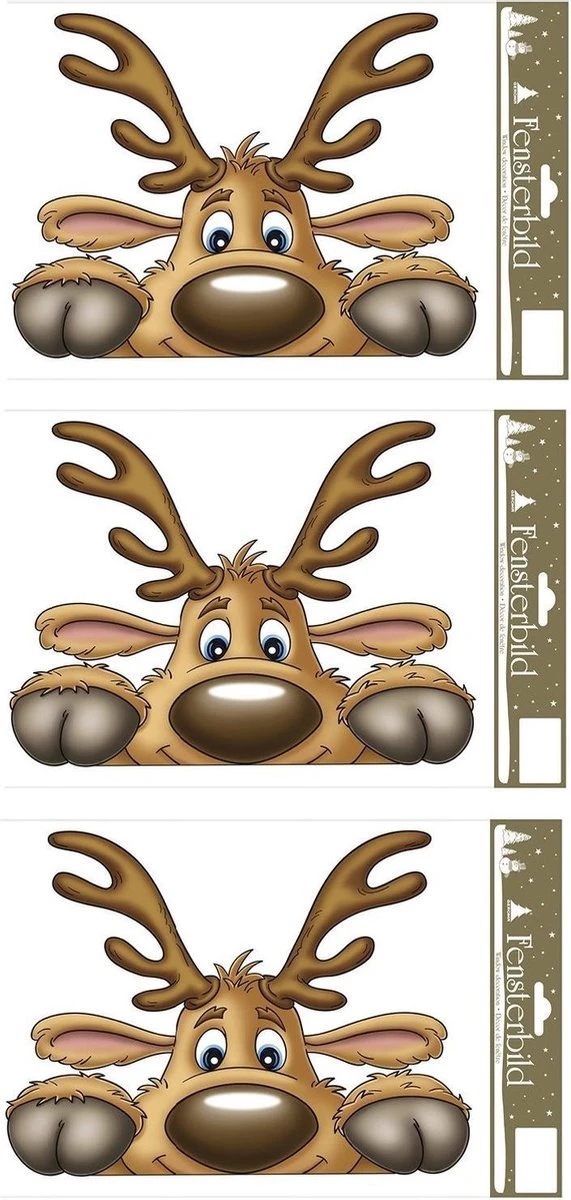 3x morceaux d’autocollants de fenêtre de Noël renne 21 x 32 cm décoration de fenêtre. Décorations de Noël/ Décoration de fenêtre de décoration de Noël / Autocollants de décoration de fenêtre.