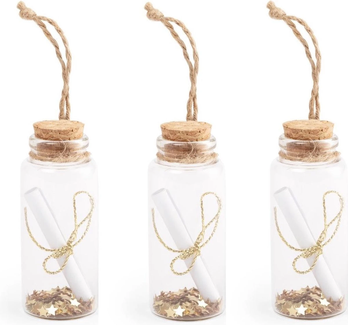 3x pendentifs décoratifs flacons avec message parchemin en flacons 7,4 x 3 cm. Petites bouteilles pour y mettre des vœux. Comprend du papier parchemin. Décorations de mariage / décorations de mariage / faveurs ou décorations pour arbres de Noël.