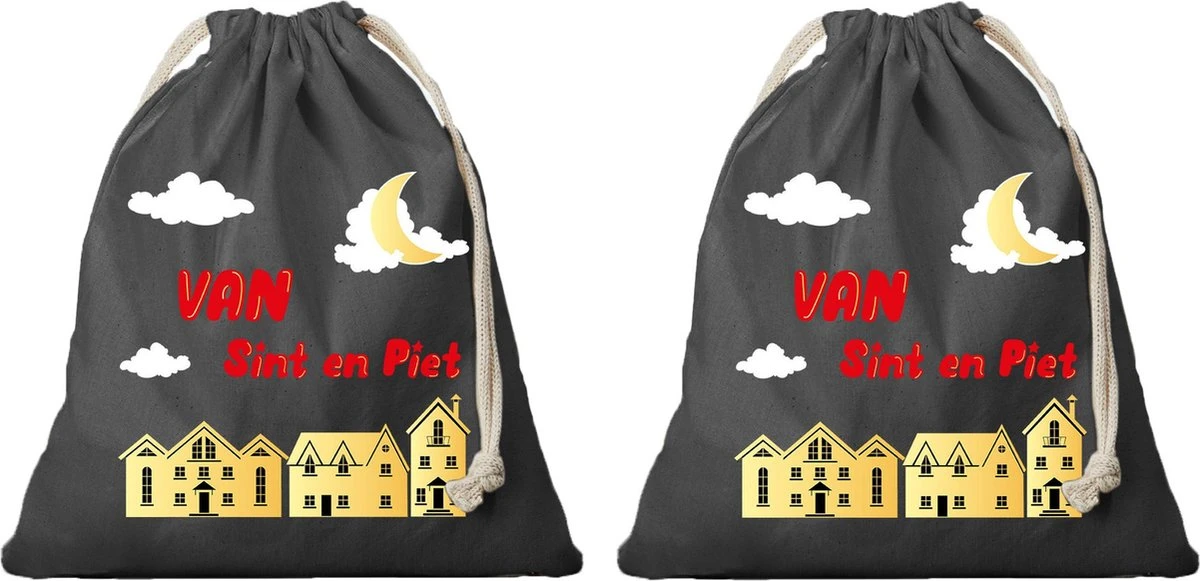4x Sac cadeau Sint and Piet noir avec cordon 25 x 30 cm. Sac pratique de taille moyenne pour ranger de petits cadeaux. Ce sac-cadeau / sac-cadeau a une impression de maisons illuminées dans l’obscurité, ou un paquet en soirée. Agréable de mettre des cadeaux par exemple pour la veille de Noël. Les coutures latérales du sac sont pliées et cousues pour éviter le rétrécissement. Taille: environ 25 x 30 cm. Matière : 100% coton, qualité 140 grammes.