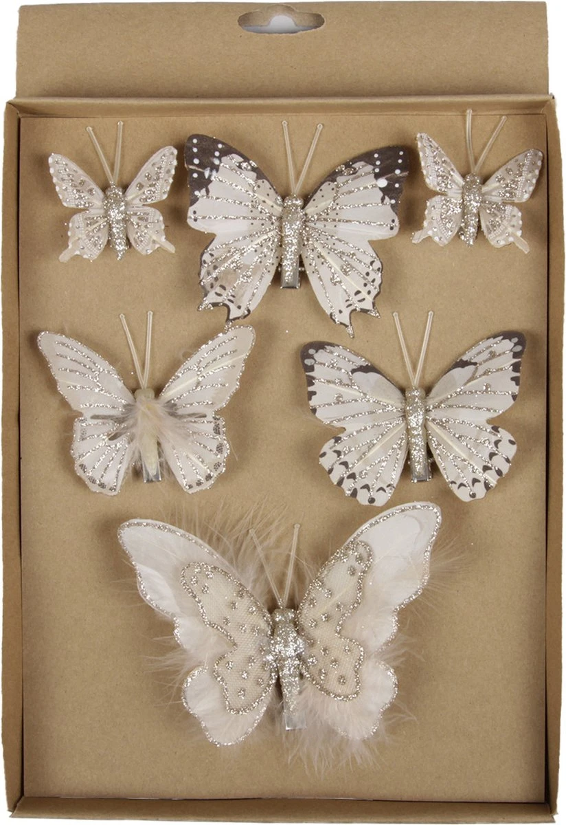 6x morceaux de papillons de décoration sur clip champagne dans un ensemble de 5, 8 et 12 cm. Les papillons sur clip peuvent être utilisés, par exemple, pour la décoration des plantes, comme garniture d’ornements de Noël, figurines de votre sapin de Noël, mais aussi comme matériel de loisirs / artisanat. Décoration de la maison/décoration de Noël papillons de décoration.
