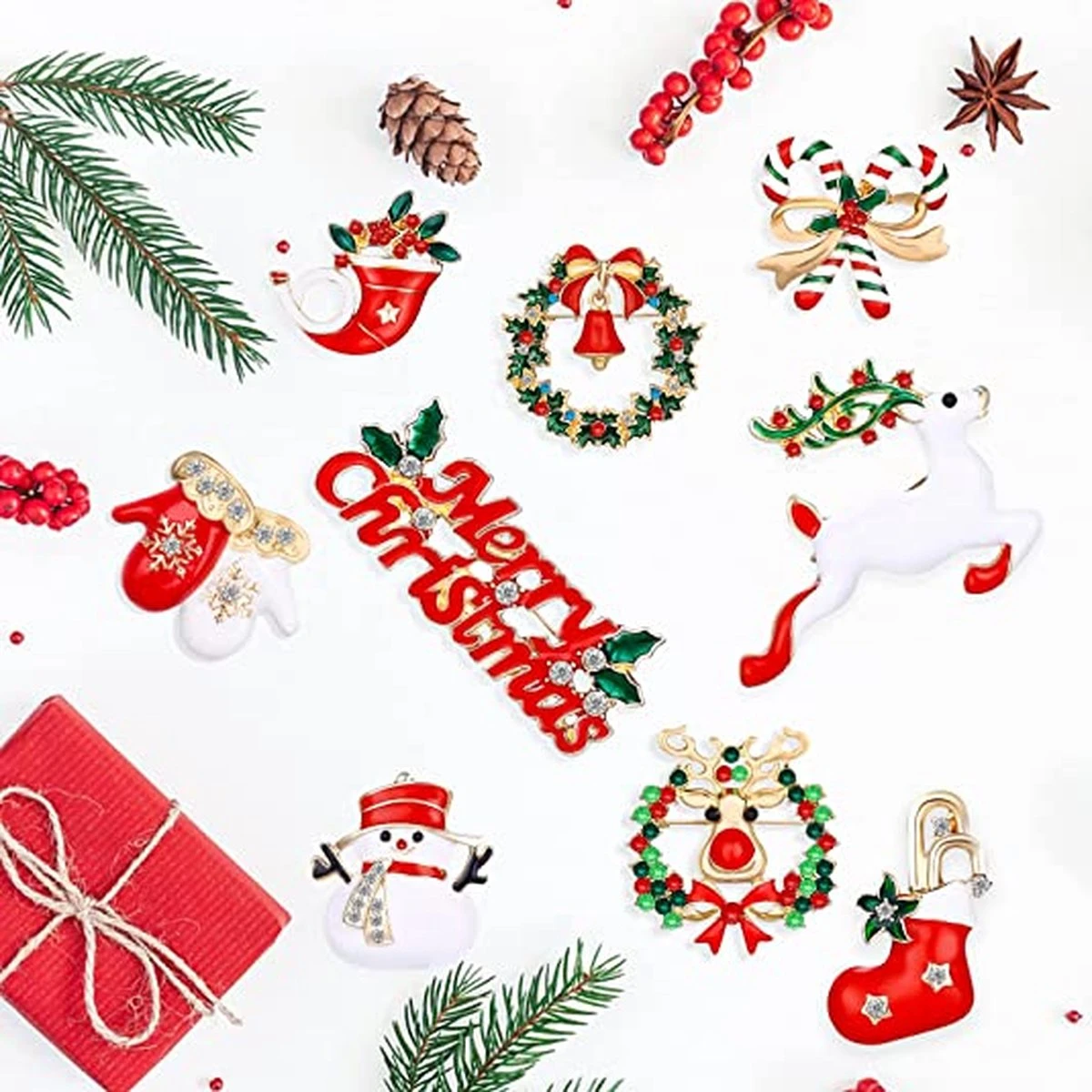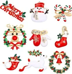 - Quantité suffisante : Les broches en cristal contiennent 9 motifs différents, y compris bonhomme de neige, tête de cerf, cruche, couronne, « Joyeux Noël», bas de Noël, haut-parleurs, gants, orignal.