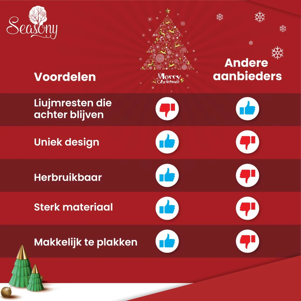 Vous avez le choix entre quatre beaux modèles. Tous les autocollants pour fenêtres conviennent à tout type de fenêtre. Vous recevrez les autocollants de fenêtre soigneusement enroulés avec un aperçu clair afin que vous sachiez comment coller les autocollants. Ils sont également réutilisables, vous pouvez donc continuer à les utiliser pour les années à venir.