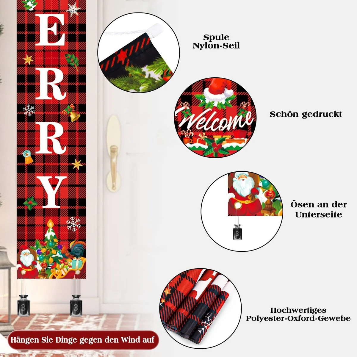 【Facile à installer et à accrocher】 La bannière « Joyeux Noël » a des tiges et des cordes. Il suffit de le sortir de l’emballage et de fixer le bâton à la bannière. Mettez le cordon de cou. En bas, il y a 2 yeux sur lesquels vous pouvez ajouter des poids pour les empêcher de voler dans le vent.