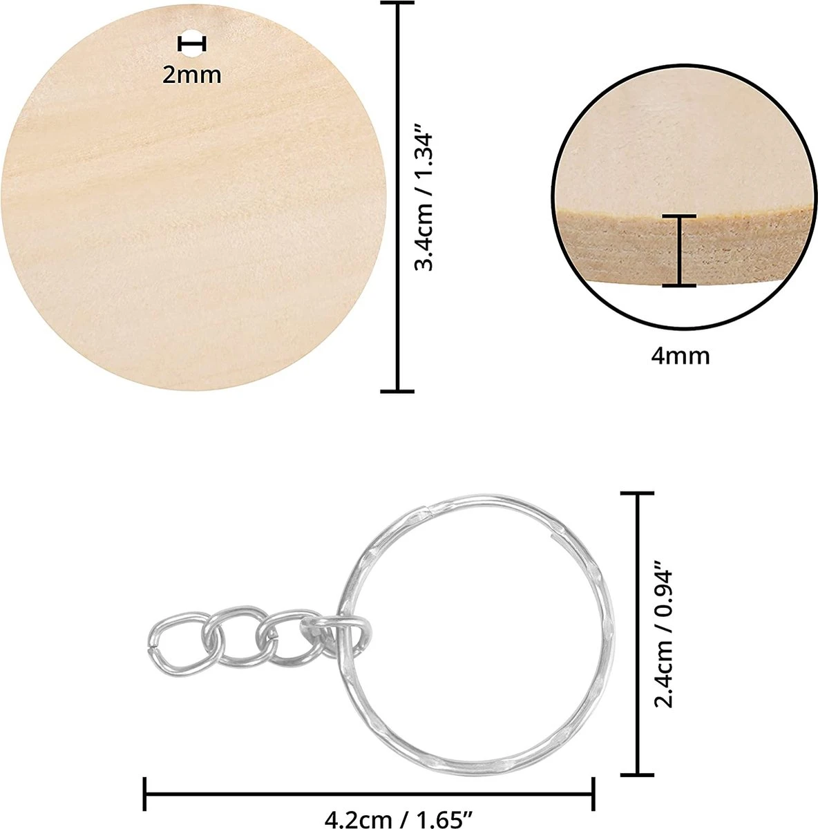 - 80 PIÈCES EN BOIS : Inclus dans cet ensemble sont 80 disques en bois. Nos disques sont fabriqués en bois de pin de haute qualité et durable. Les disques sont de forme ronde et chaque pièce a une surface naturelle non traitée qui a été poncée lisse et sans éclats. Chaque cercle mesure 3,4 cm de diamètre, pour une épaisseur de 4 mm. Sont également inclus 80 porte-clés robustes en acier inoxydable. Ces anneaux servent à localiser les trous sur le dessus du disque.