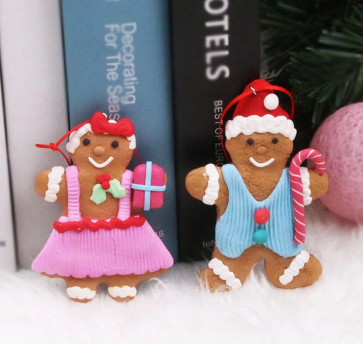 Un ensemble de 2 cintres de Noël. Un bonhomme en pain d’épice et une femme en pain d’épice.