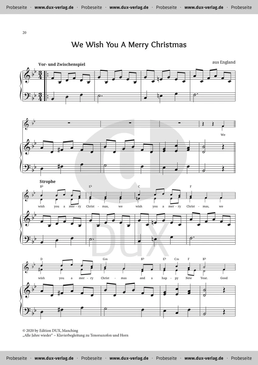 Edition Dux Alle Jahre wieder – Klavierbegleitung zu Trp/A-Sax/Klar/Pos – Livre de Noël pour instruments à clavier
