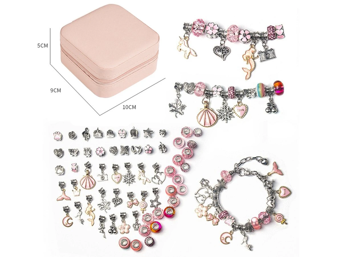 Vous avez fini de fabriquer le bracelet ? Berg soigneusement les breloques et les perles dans la super belle boîte à bijoux avec fermeture éclair.