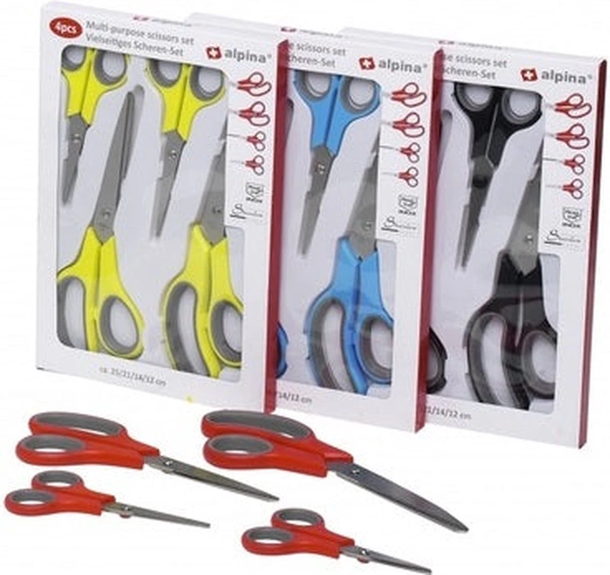 Jeu de ciseaux multifonctionnels d’ Alpina. Acier inoxydable 25/21/14/12 centimètres.