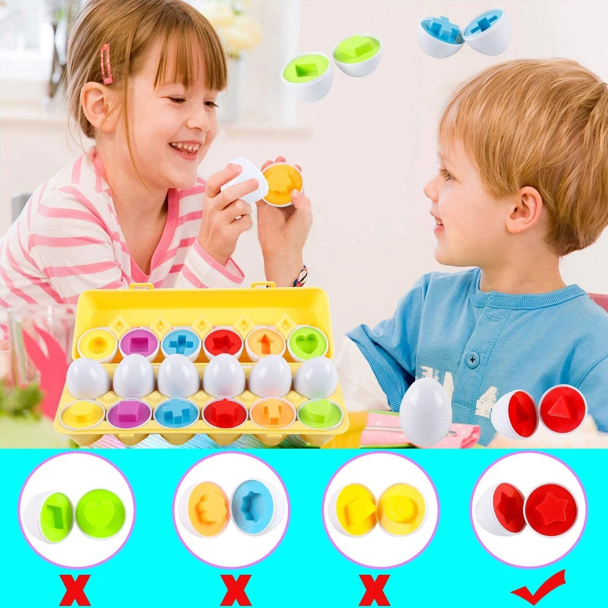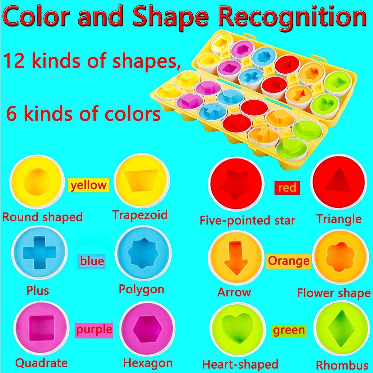 - PROPRE RÉGLABLE: Le speelgoed d’éducation préscolaire de cuisine convient aux enfants de plus de 3 ans. Il existe 12 formes différentes (triangle, carré, cercle, trapèze, etc.) et 6 couleurs (jaune, violet, vert, bleu, rouge, violet) de faux œufs. Les œufs jouets assortis sont comme de vrais œufs, avec un rapport de 1:1, ce qui est plus vif et réaliste. Ouvrez l’œuf, identifiez-les par couleur et par forme, assemblez-les. Il peut améliorer la coordination œil-main, le puzzle de tri de la reconnaissance des couleurs et des formes.