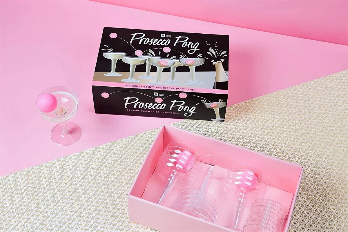 - Qu’est-ce que vous attendez ? Rassemblez- Kom , éclatez les bulles et amusez-vous avec ce jeu de fête à boire Prosecco Pong de Talking Tables