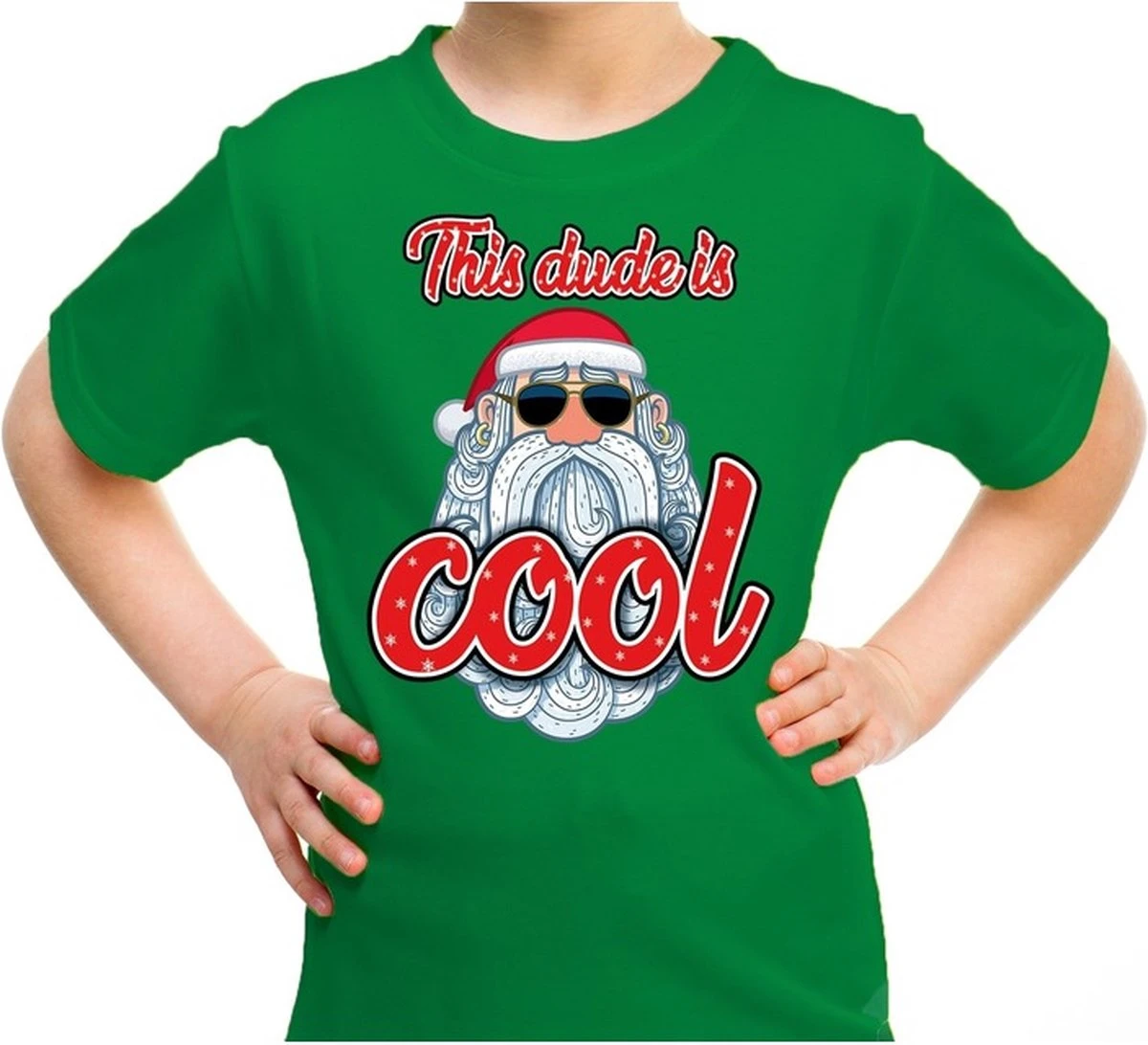 Chemise de Noël d’erreur / t-shirt de père Noël ce mec est vert frais pour les enfants. La chemise de Noël est imprimée avec l’image d’un Père Noël cool avec des lunettes de soleil et le texte: This Dude is COOL. Cette chemise / t-shirt de Noël est amusant à porter autour / pendant Noël. Matériel: 153 grammes, 100% coton.
