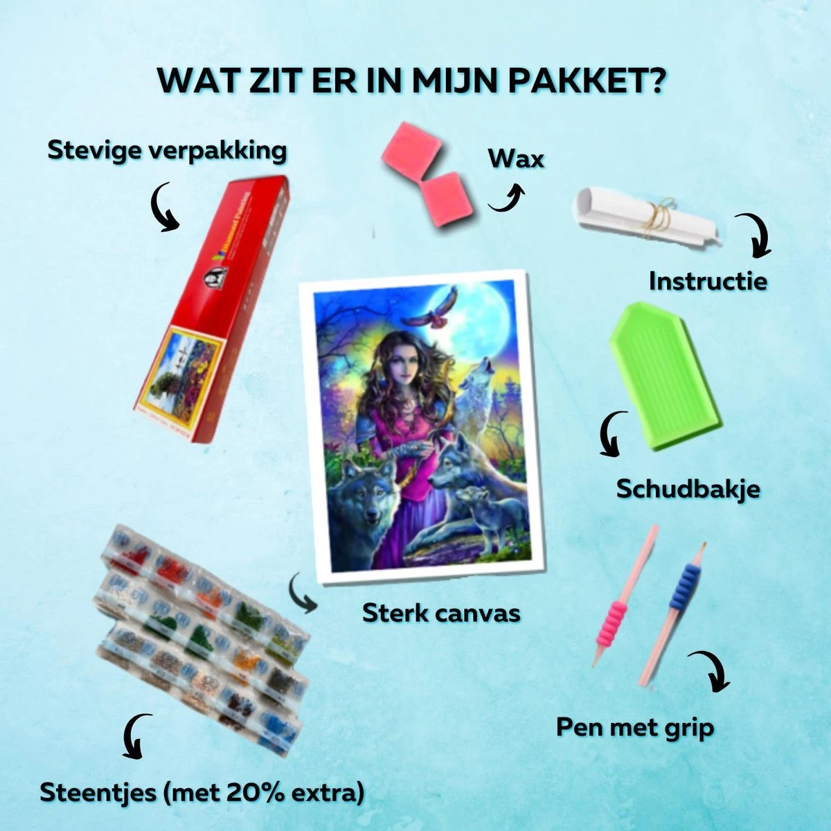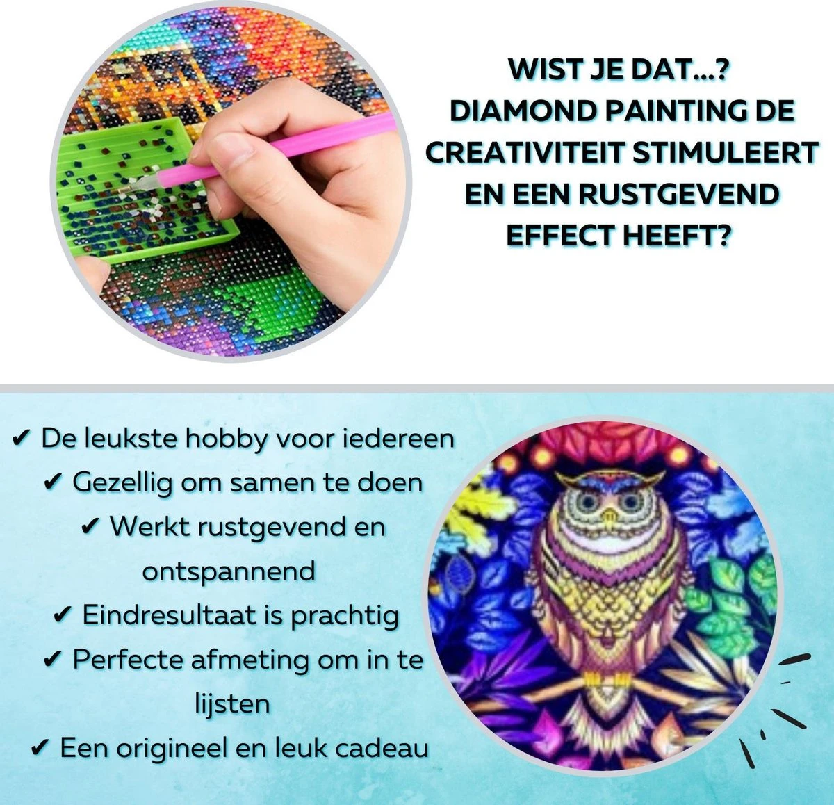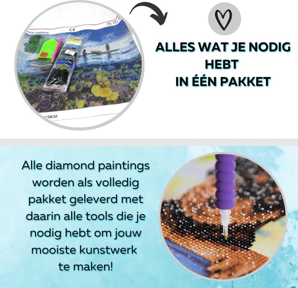 Avec ce pack de peinture au diamant, vous pouvez réaliser vous-même les plus belles créations! Collez les diamants magnifiquement scintillants sur un motif pré-imprimé sur toile pour créer une belle peinture.