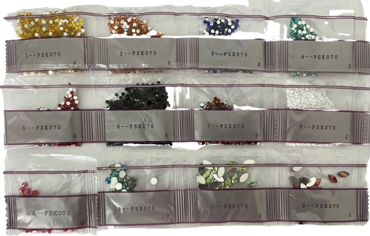 Suffisamment de pierres de diamant, toutes les couleurs dans des sacs séparés.