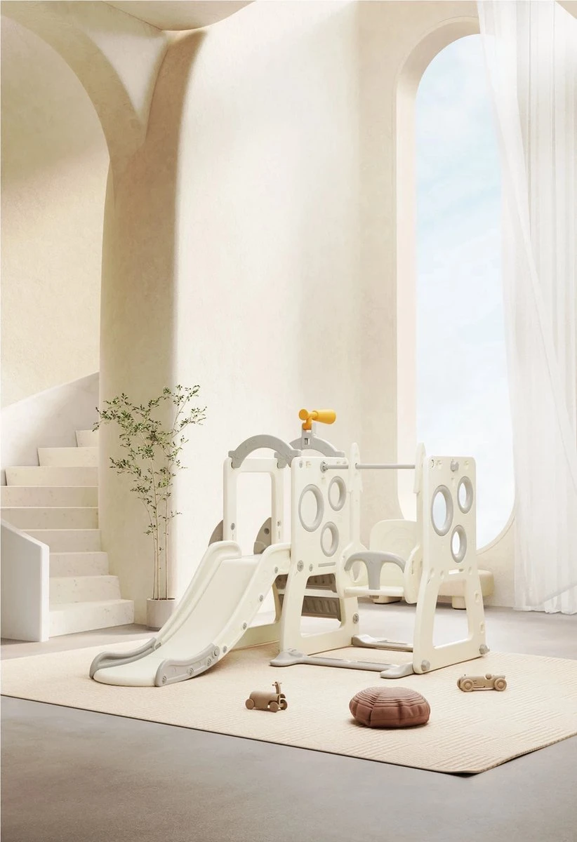 Cette tour de jeu moderne 4 en 1 super amusante peut être utilisée à l’intérieur ou à l’extérieur, afin que votre enfant puisse s’amuser toute l’année. Avouons-le, c’est le meilleur cadeau pour votre enfant! Il a un toboggan, un mur d’escalade et une balançoire robuste. Il y a aussi des jumelles sur la tour de guet, donc votre enfant peut toujours jouer dans la tour. En raison des anneaux sur le côté, un jeu de lancer peut également être joué.