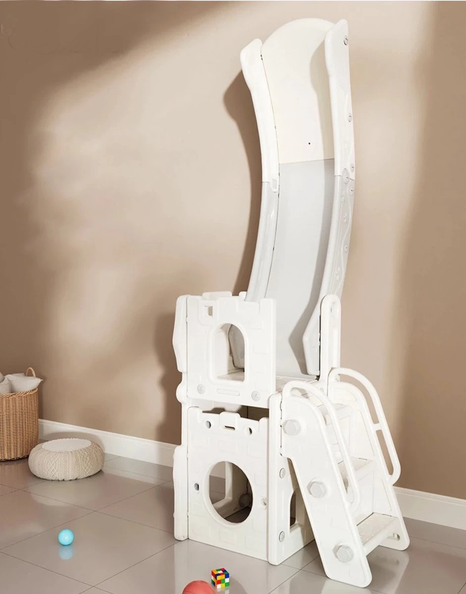 Cette tour de jeu moderne 3 en 1 super amusante peut être utilisée à l’intérieur ou à l’extérieur, afin que votre enfant puisse s’amuser toute l’année. Avouons-le, c’est le meilleur cadeau pour votre enfant! Il dispose d’un toboggan, d’un panier de basket et votre enfant pourra également jouer dans la tour.