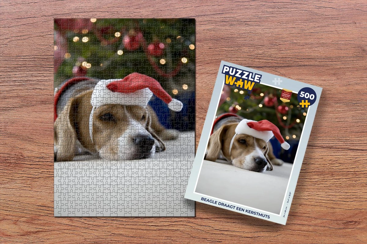 Puzzle 500 pièces – Beagle coiffé d’un bonnet de Noel – Puzzle