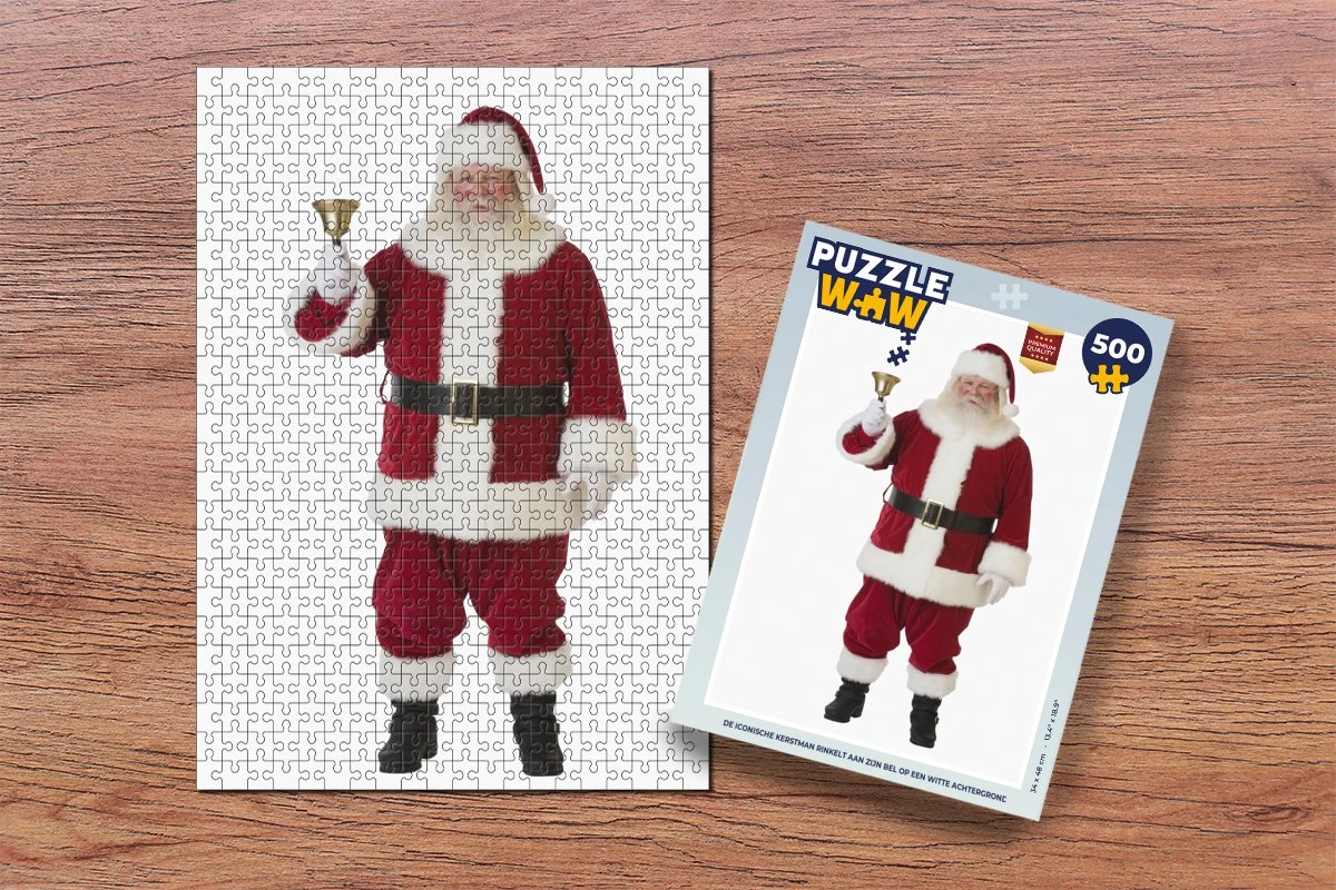 Puzzle 500 pièces – L’iconique Père Noël sonne sa cloche sur fond blanc – Puzzle