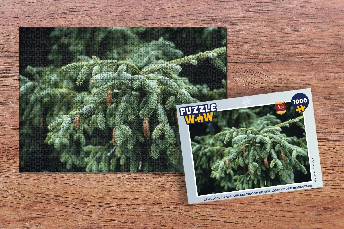 Puzzle 1000 pièces – Un gros plan d’un sapin de Noël près d’une forêt aux États-Unis – Puzzles