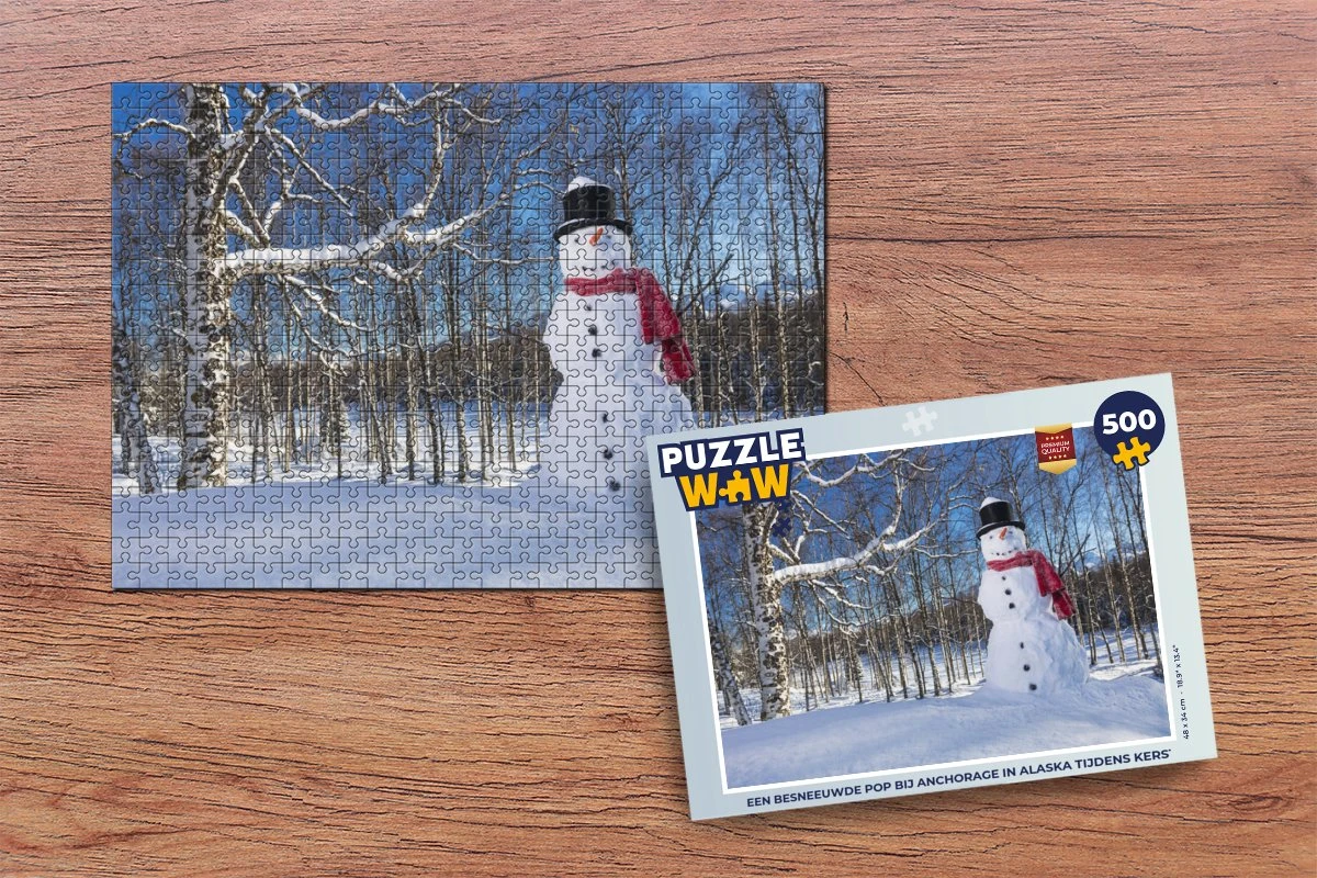Puzzle 500 pièces – Une poupée enneigée près d’Anchorage en Alaska à Noël – Puzzle