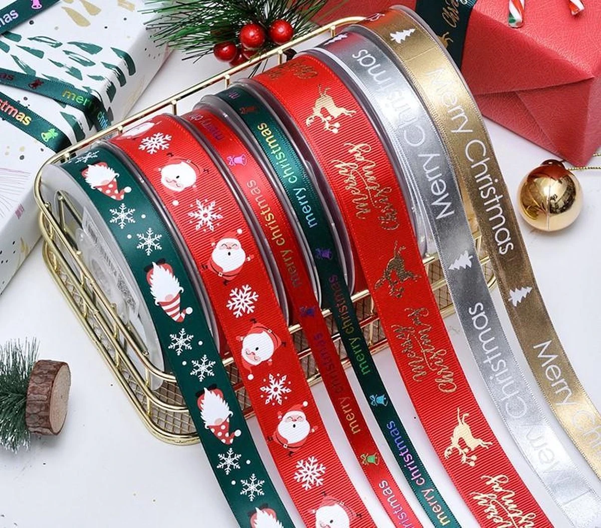 Ce joyeux ruban de Noël tendance avec des Pères Noël et des flocons de neige est idéal pour emballer des cadeaux de Noël, décorer le sapin ou la couronne de Noël et décorer votre maison.