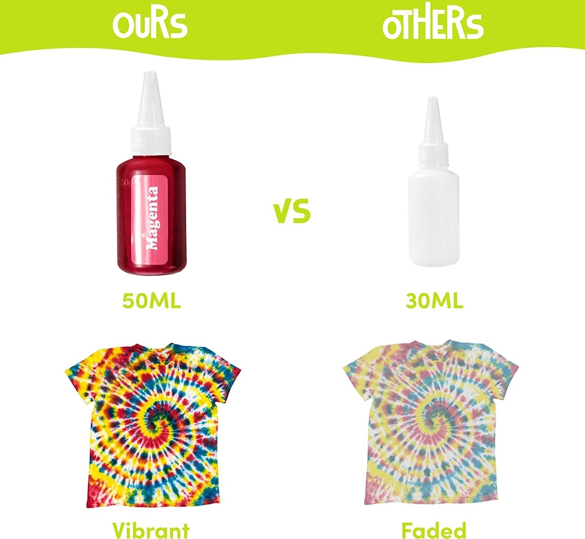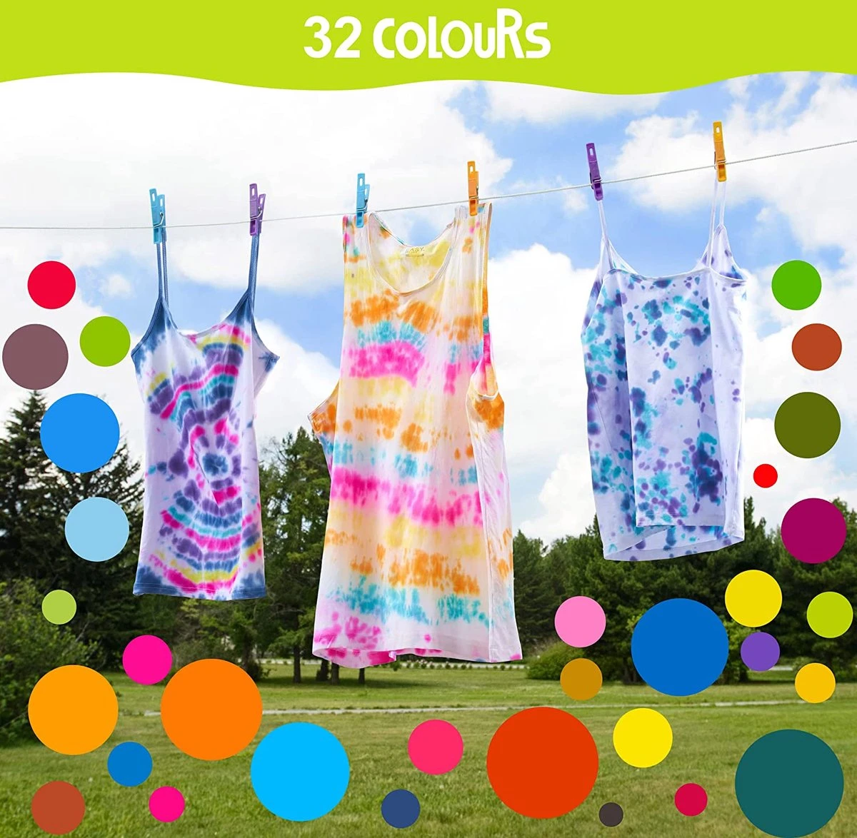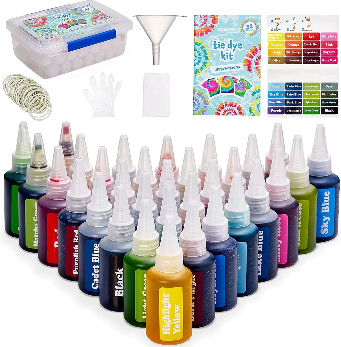 - Tout ce dont vous avez besoin dans un seul kit – Le kit contient 32 flacons de peinture de 50 ml, 32 sachets de peinture, 120 élastiques, 14 gants de protection, 2 entonnoirs, 1 nappe épaisse et 1 livret d’instructions.