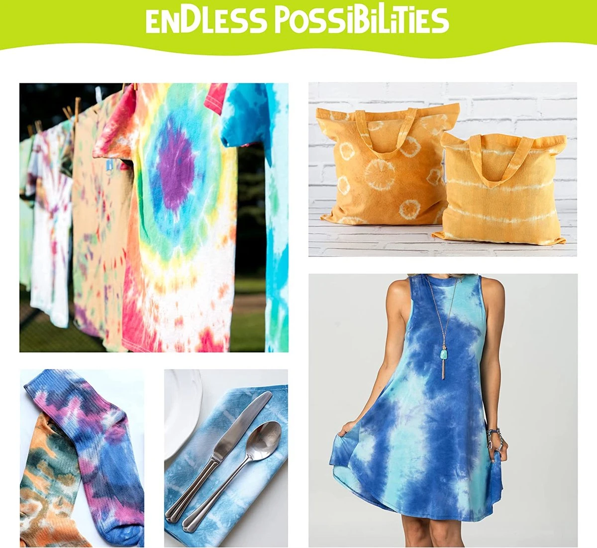- Faire des vêtements de DIY – Une activité familiale amusante que les enfants et les adultes apprécient. Créez vos eigen designs et créez des vêtements funky tie & dye ! Le kit est parfait pour les adolescentes et les garçons et également idéal pour les 6, 7, 8, 9, 10, 11 et 12 ans et même les adultes !