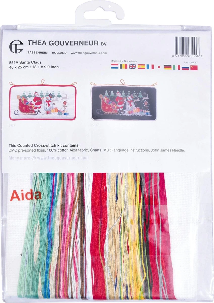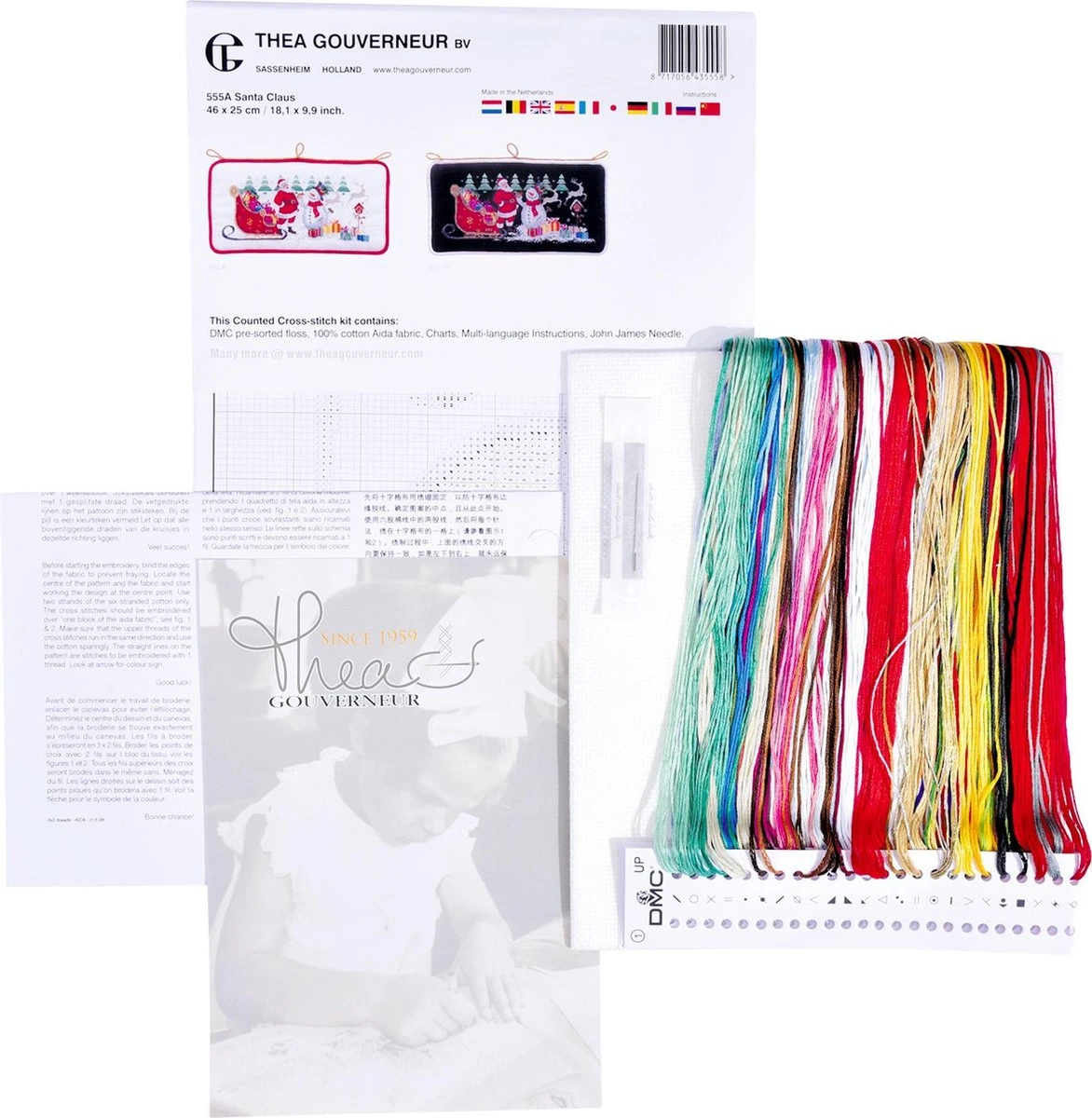 Kit de points de tissu Thea Gouverneur Père Noël sur Aida – 46 x 25 cm (18, 0 pouces x 9,9 pouces), 16 unités