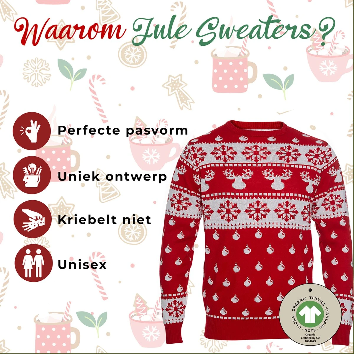 Jule Sweats pense au-delà du Noël de cette année que l’on souhaite fêter avec un super pull de Noël… Jule Sweats pense aussi aux Noëls à venir et à ceux de la prochaine génération. Et c’est pourquoi Jule Sweats a réalisé une grande partie de sa collection en100% Katoen biologique ! Pourquoi le Katoen biologique ? Le coton biologique est cultivé sans l’utilisation de poisons agricoles comme pesticides.