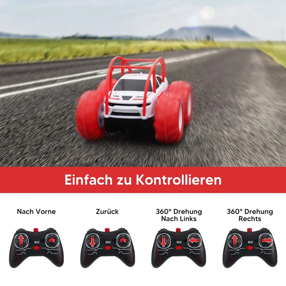 - 【 Lumières LED colorées à 360° RC Stunt Car 】 Cette voiture télécommandée avec une conception de structure incurvée stable unique permet une flexibilité à gauche, à droite, à l’avant, à l’arrière, ainsi que des retournements à 360°, des rotations, des obstacles et des écrasements sur les murs, etc. Les lumières lumineuses colorées peuvent instantanément attirer l’attention des enfants, cette voiture jouet est inodore et non toxique, très sûre pour les enfants.