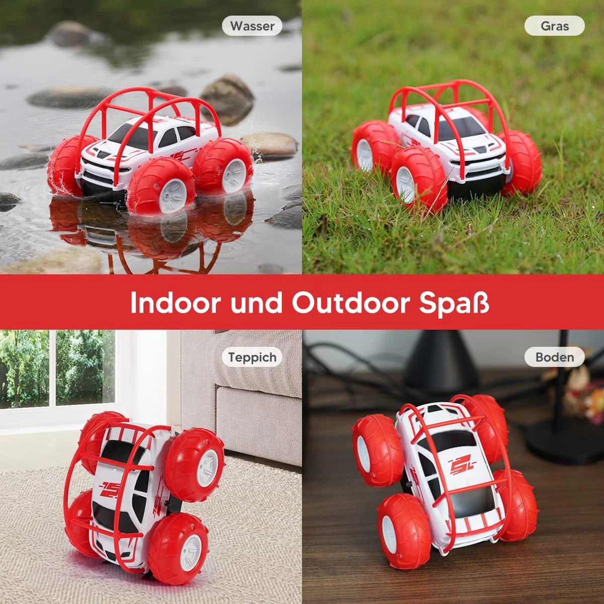 - 【Voiture RC Offroad & BATEAU RC 2 en 1】 La voiture de cascade pour enfants est fabriquée en plastique ABS avec des détails exquis, anti-collision et anti-chute, IP68 étanche à haute résistance. Après avoir inséré la batterie, serrez les vis du couvercle de la batterie pour améliorer la résistance à l’eau. Les pneus gonflables (y compris la pompe) offrent un recul incroyable et une expérience de conduite révolutionnaire. Qu’il s’agisse de sols lisses, de tapis ou de pelouse, les piscines, les lacs et tous les terrains joueront très bien.
